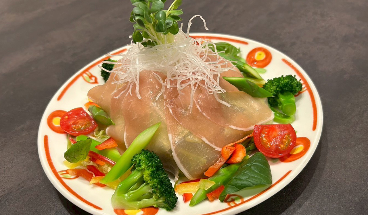 通常はぽん酢で味わうところ、「花うらら」ではだいだい酢を使用しているのが特長です。